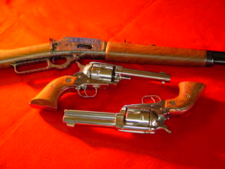 The new Marlin along with Little Heifer's twin Rugers Now, if we can just break out of this extremely hot weather cycle, we will try and get out and do some shootin'! (Yep. "Too dang hot" has been another of my excuses for doin' nothin' for the last month!) Well, It's time to shut down here, So . . . . 'Til next time, Keep 'em shootin' straight, shoot 'em often, and above all, BE SAFE!!!!! THE OL'