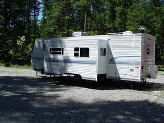 Yep, the Ol' Hillbilly's bein' lazy again. Already 8 days into August, and no monthly newsletter 'till now! I've got all kinds of good excuses though. (The Little Heifer says I have excuses enough for any 10 normal people.) One of the recent happenings includes a new travel trailer that Ann bought on June 14th. It's a 29 foot Nomad, by Skyline with a large slide out that makes as much floor space as our first apartment! (Well, almost!)