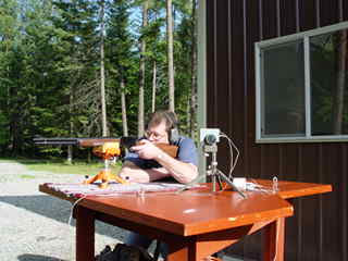 Here's the Marlin along with my Ruger Vaquero Now back to our Midwest trip. If you look back at the last 3 months of my newsletters, you will find I have written about load development for, and shooting of our varmit rifles. (A .25-06 and a .243) The master plan was to try our rifles and loads on some Missouri coyotes while we were there. So rifles, mouth calls, electronic call, ammo, and camo clothing were dutifully packed away in the big red Ford truck and made the trip with us. Upon arrival, we trekked to the local vendor to pick up non resident licenses. I picked up the hunting regs to check on coyote hunting, and suddenly found the joke was on me! I discovered that Missouri closes the coyote season, while the turkey season is in progress. The turkey season was in full swing, and it didn’t close until the day before we were scheduled to leave! Oh well, better luck next time! My brother thinks the local coyotes picked up some sort of disease last fall and most of them died off during the winter. Last spring they were thick as fleas, and now he and Mom don’t see any or even hear them howl. Probably just as well we didn’t spend $60 apiece on licenses! My son Rick had his 40th birthday on May 31st, and as coincidence would have it, wife Christy wanted to give him a Marlin lever action rifle. Early this year the 2003 Marlin catalogue included a Model 1894 in .41 Remington Magnum caliber. This caliber was last catalogued in 1989. Rick began whining for one of these early this year, because he has a Ruger Redhawk in that caliber. Christy asked me to do the leg work in finding one. Another tough job! Everyone I talked to in the aforementioned gun shops had them on order but hadn’t received any. Then, I happened to be in the Black Sheep Sporting Goods store in Coeur d’Alene, Idaho in early May looking for a particular Primos turkey call. Lo and behold, they had a .41 Mag in the rack. Further inquiry established that they had 3 of them. Rick got the last one on May 31st. My friends at Sportsman’s Warehouse and the White Elephant can’t understand how the Black Sheep got 3 and they can’t get any! Our June 2nd shooting session included both the .41 Mag and my .44-40. We set up my bench at 25 yards and proceeded to burn some powder. We tried one factory load in each rifle, and one reload each. Scrounging around in my powder supply, I found an unopened canister of Hercules Unique powder. (Hercules was bought out by Alliant Powder Co several years ago, so this was quite old, but showed no signs of deterioration) I loaded some .41 Mags in new Winchester cases, with CCI 300 primers, Sierra 210 gr JHC bullets, and the minimum Unique powder charge shown in the 5th Edition of the Sierra Manual. These loads clocked about 1300 fps from the rifle and 1200 fps from the 6 ½ inch Redhawk. Rick, set up and ready to go To make a long story short, these loads didn’t shoot worth a cuss in either the rifle or revolver! The velocities were consistent, with standard deviation in my acceptable range, but they would hardly stay on the paper! (In fact, two of the shots splintered the top crosspiece on my new target stand) More work to do here. We also tried some Remington factory .41 Mag loads with 170 grain JHP bullets in the rifle. They were fast, (a little over 2000 fps) but didn’t shoot very well either. The performance of the .44-40 was a little better. My handloads that run about 800 fps from the 5 ½ inch Ruger Vaquero, clocked at 1050 fps from the 24 inch barrel on the Marlin. After a little getting accustomed to the trigger, (which needs some work), lowering the rear sight, and drifting the rear sight a smidgen to the left, things settled in pretty well for the first time out. Here’s the last 5 shot group I shot with the handloads.